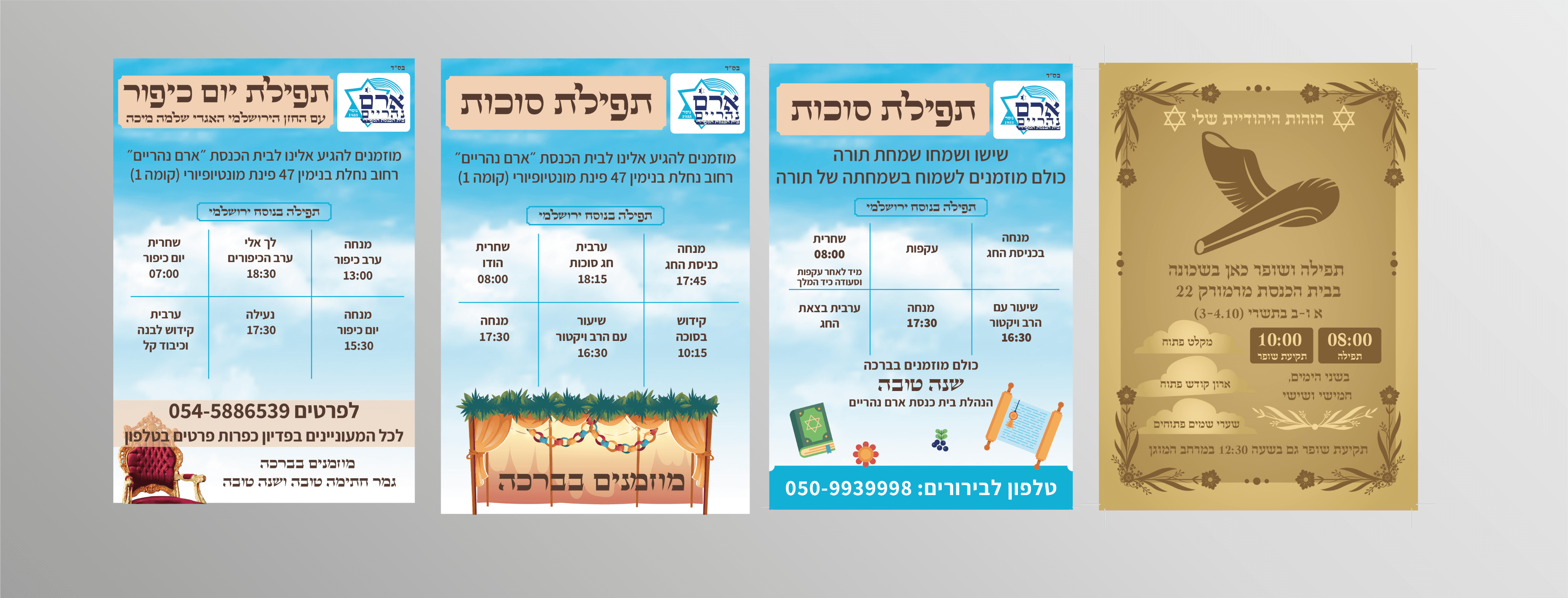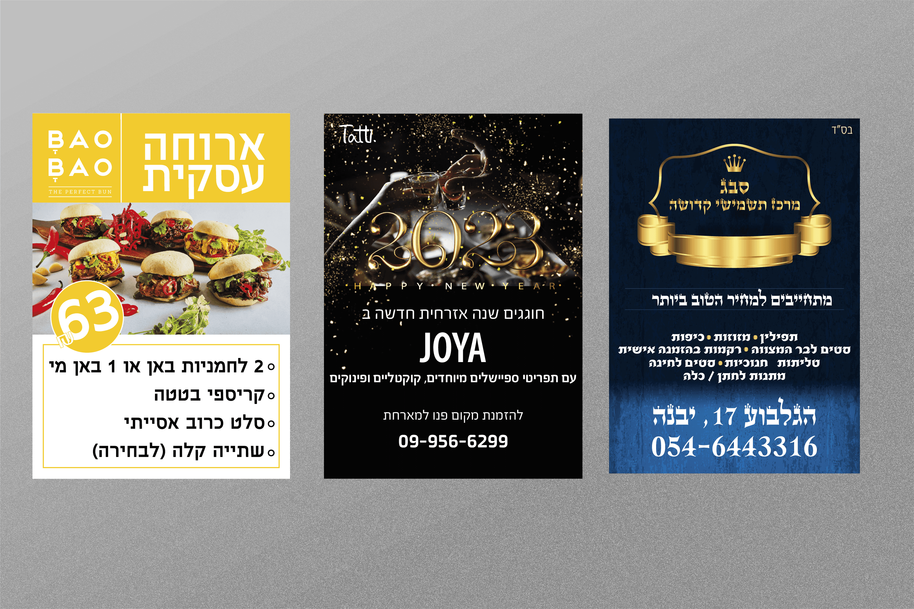I have attached a selection of my recent design works created during my time at Extra Print, a design studio based in Tel Aviv. Each project was developed from initial client briefs, which I then expanded upon independently — combining freehand conceptualization with close collaboration and iterative feedback from clients.
