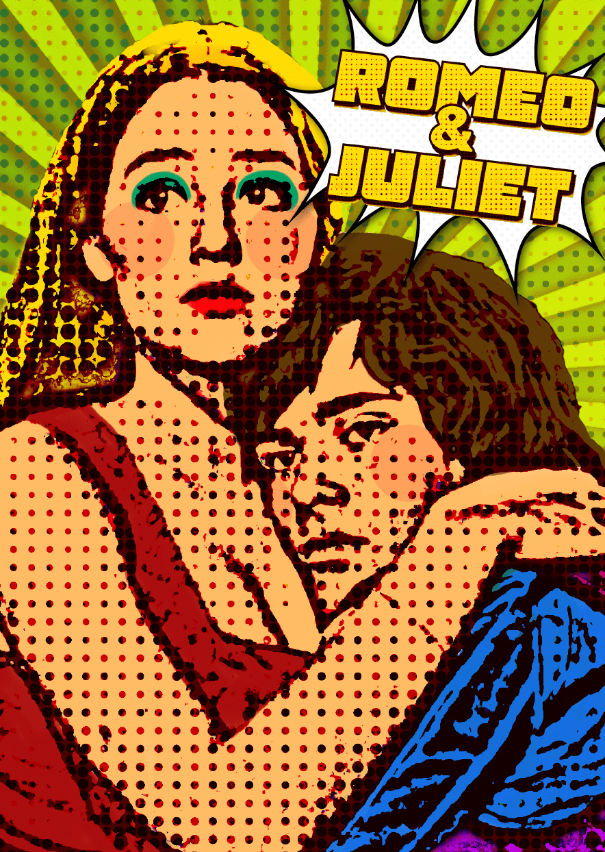 Posters for Romeo and Juliet in 2 different styles: on the left pop art, on the right digital